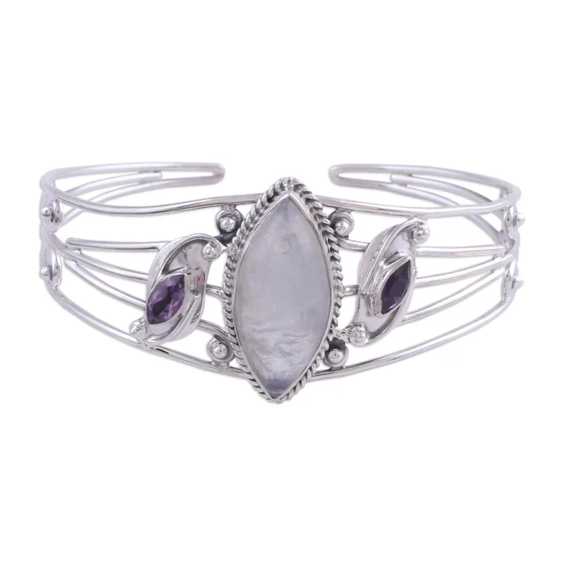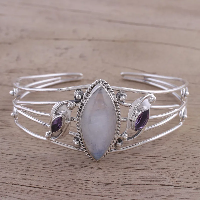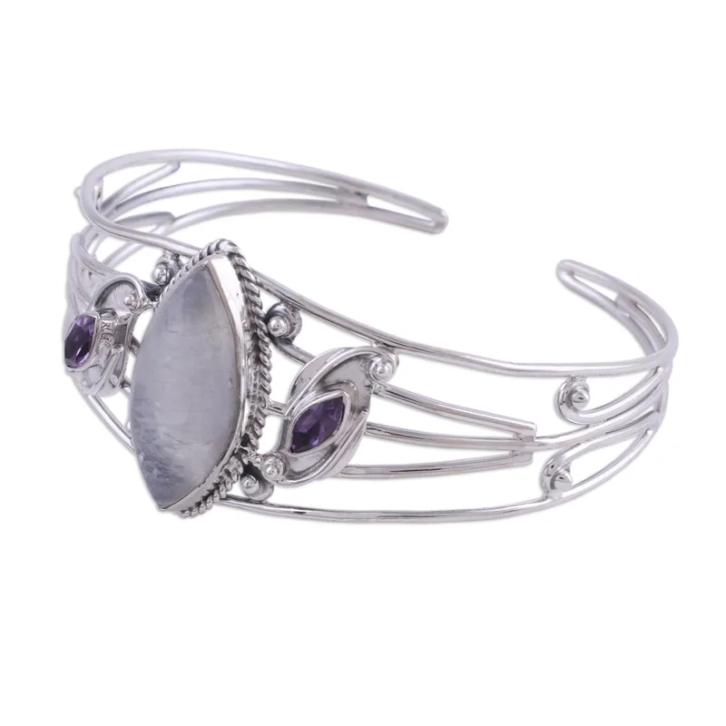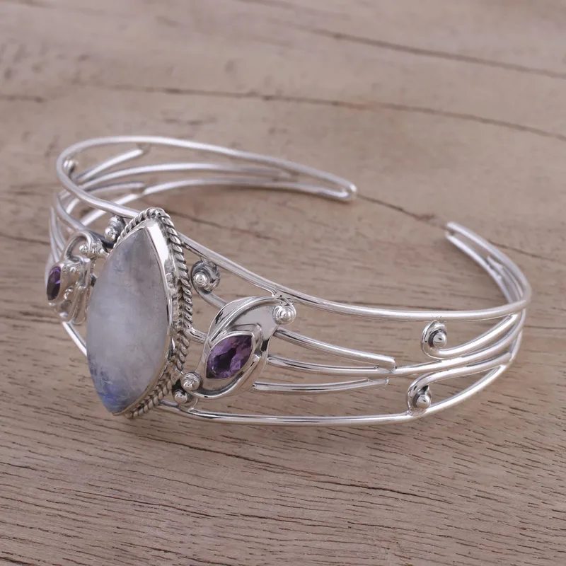 Product name:Rainbow Moonstone and Amethyst Cuff Bracelet