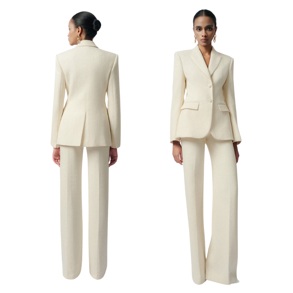 Feminine Style Trousers Women With Pockets Nora Wool Straight- Leg Pants Good-Quality Women Clothing 2 Piece Set Whiteant
