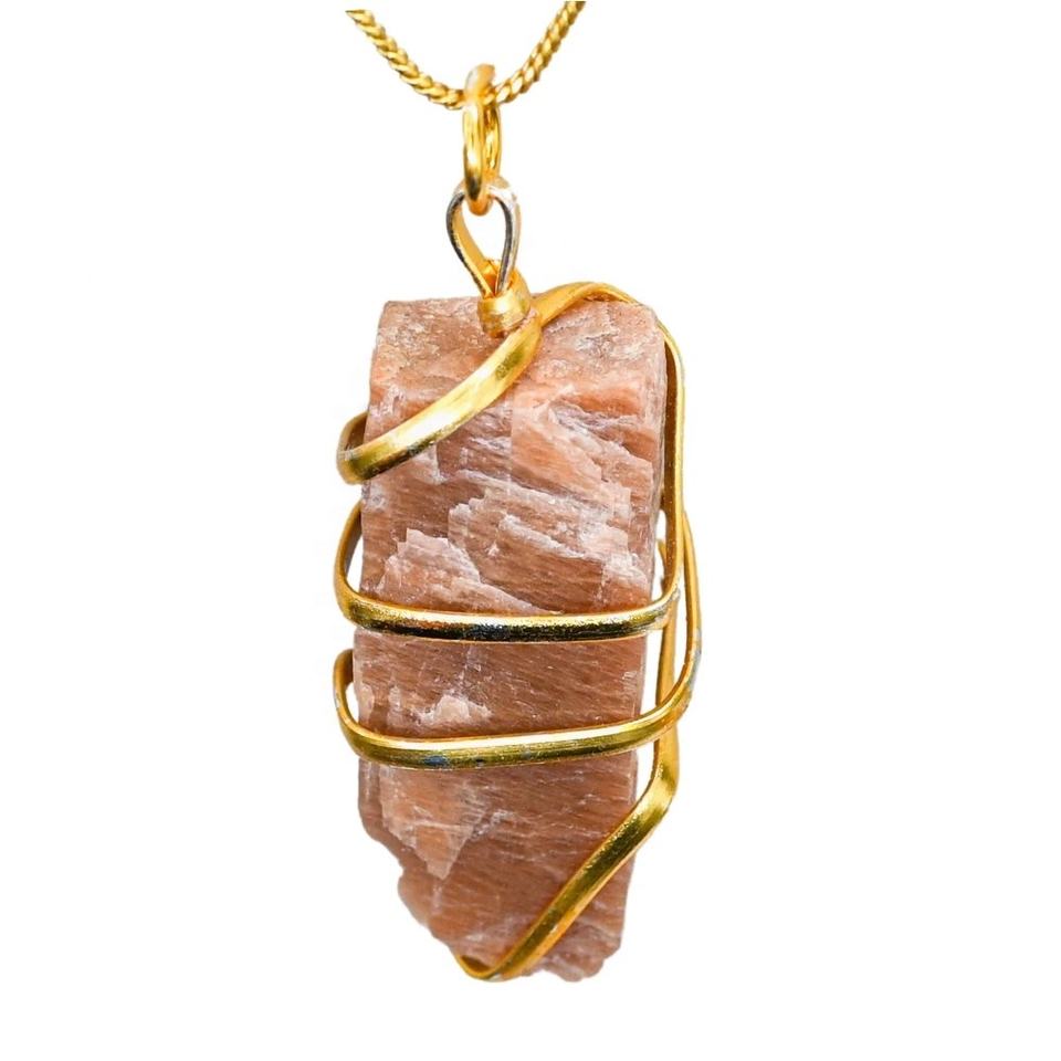 Feng Shui Style Quartz Pendant Hand-Wrapped Peach Moonstone Unique Love Style Raw Gemstone Jewelry Semi-Precious Stone Crafts