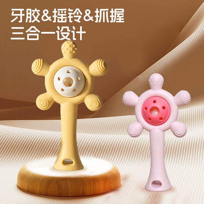 Ferris wheel, shaking bell, teething gum, baby teething stick, toy, food grade silicone three in one bite adhesive