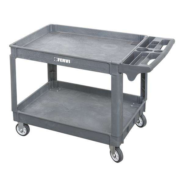Fervi 2-Tier Polypropylene Trolley C075/2 Four-Wheel Tools Storage Cart Movable Plastic Workbench