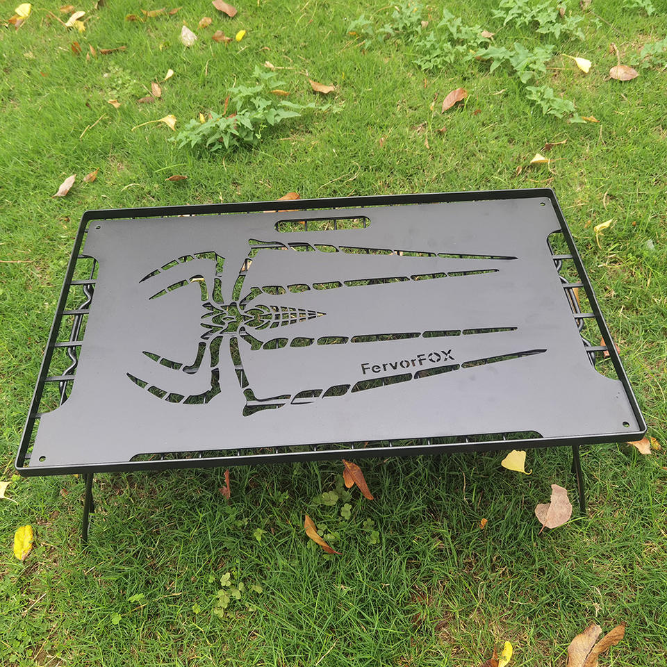 FervorFOX Outdoor Table 59x34cm Rectangular Folding Metal Top With Wire Mesh Shelf For Camping Storage Rack