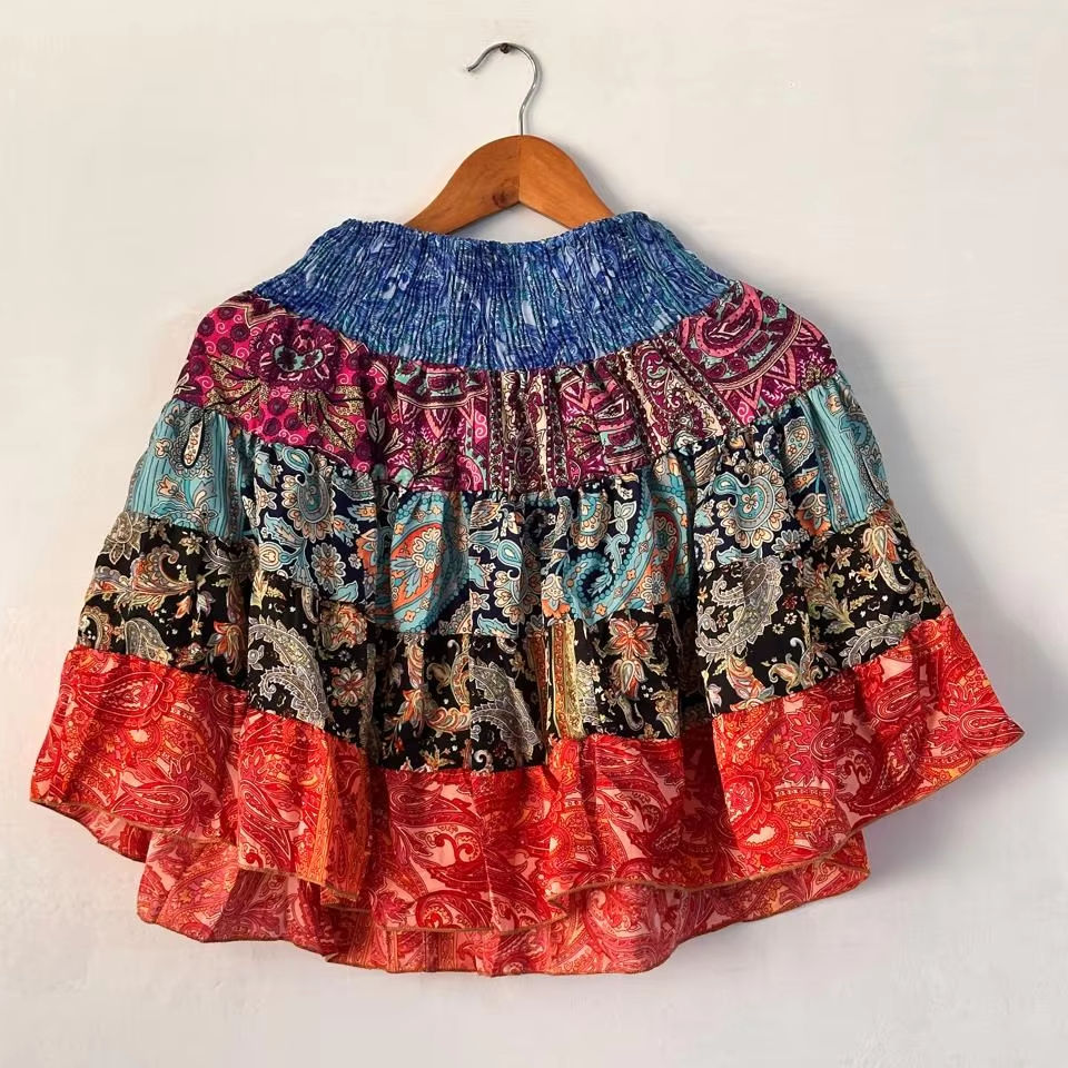 Festival Skirt Tiered Layer Long Flowing Silk Mini Skirt Casual Breathable Boho Style Silk Maxi Skirt