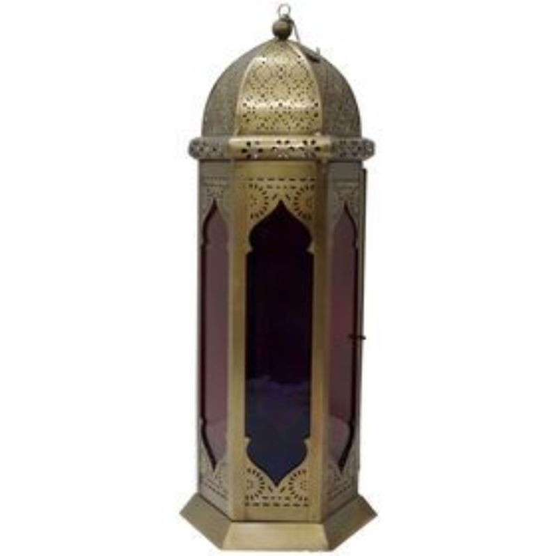 Festivals and Home Decoration Floor and Hanging Gold Finished Metal Moroccan Lantern With Colorful Glass Candle Lanterns