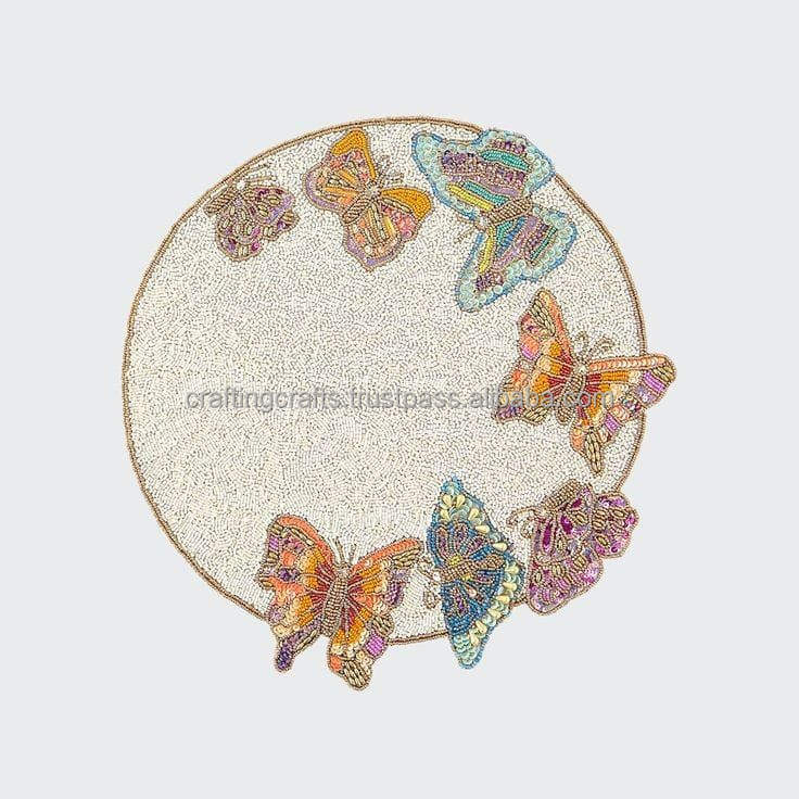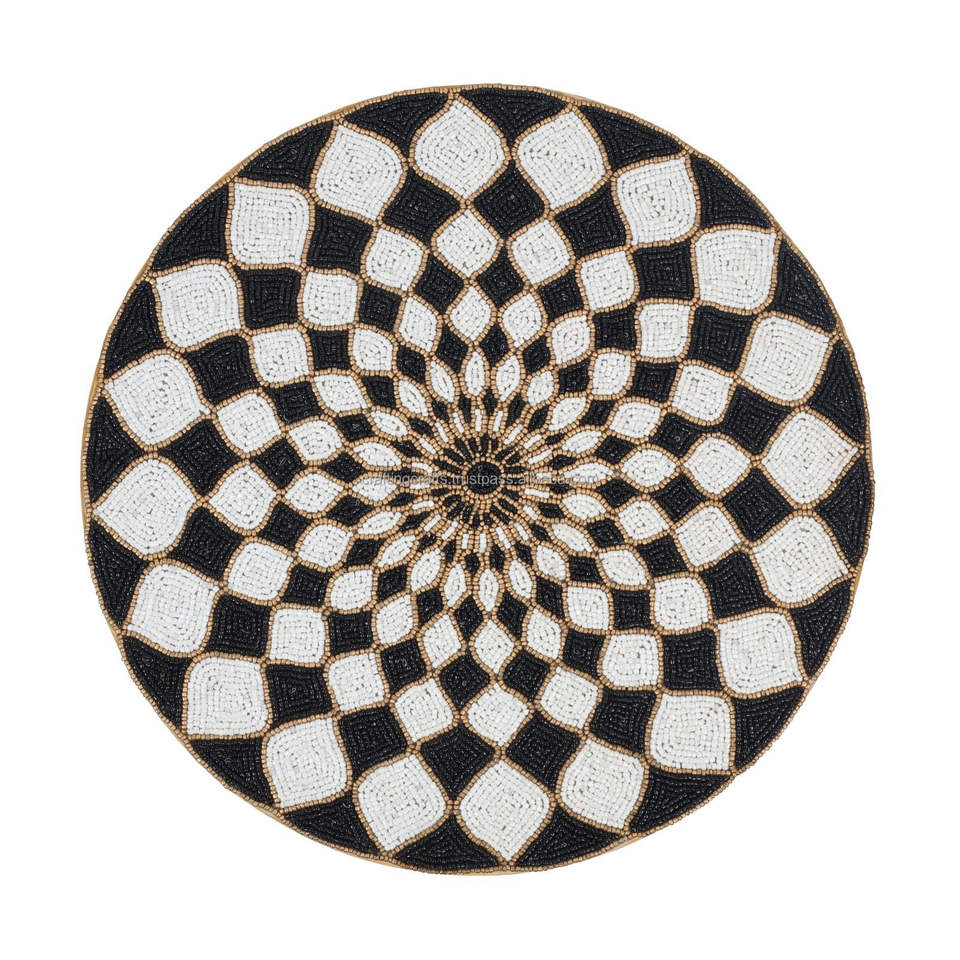 Festive Arrival Christmas Decor Eco-Friendly Modern Round Custom Size Handmade Beaded Place Mat Glass Seed Beads Fabric Backing
