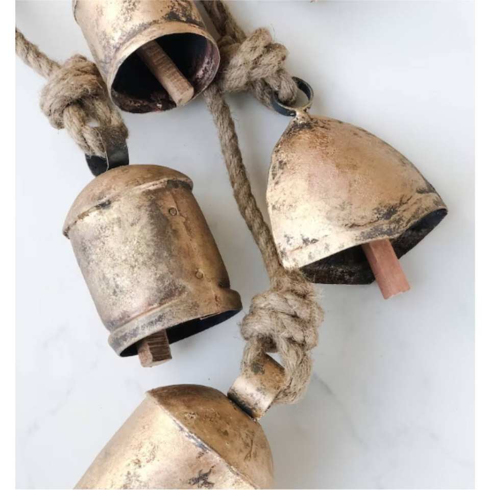 Festive Brass Carved Jingle Bells Gold-Plated Finish Customized Wide Hanging Rope Nautical Christmas Tree Halloween Party Home