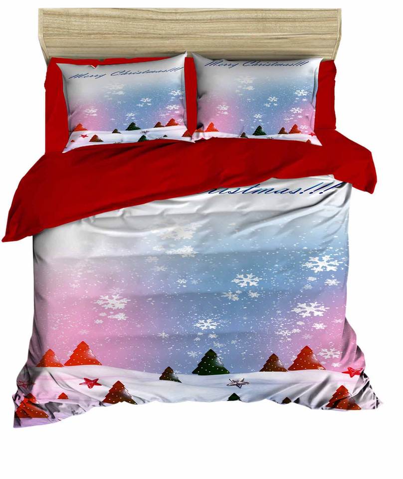 Festive Christmas Pattern Digital Print Double Duvet Cover Set 200x220 cm Ran force Cotton