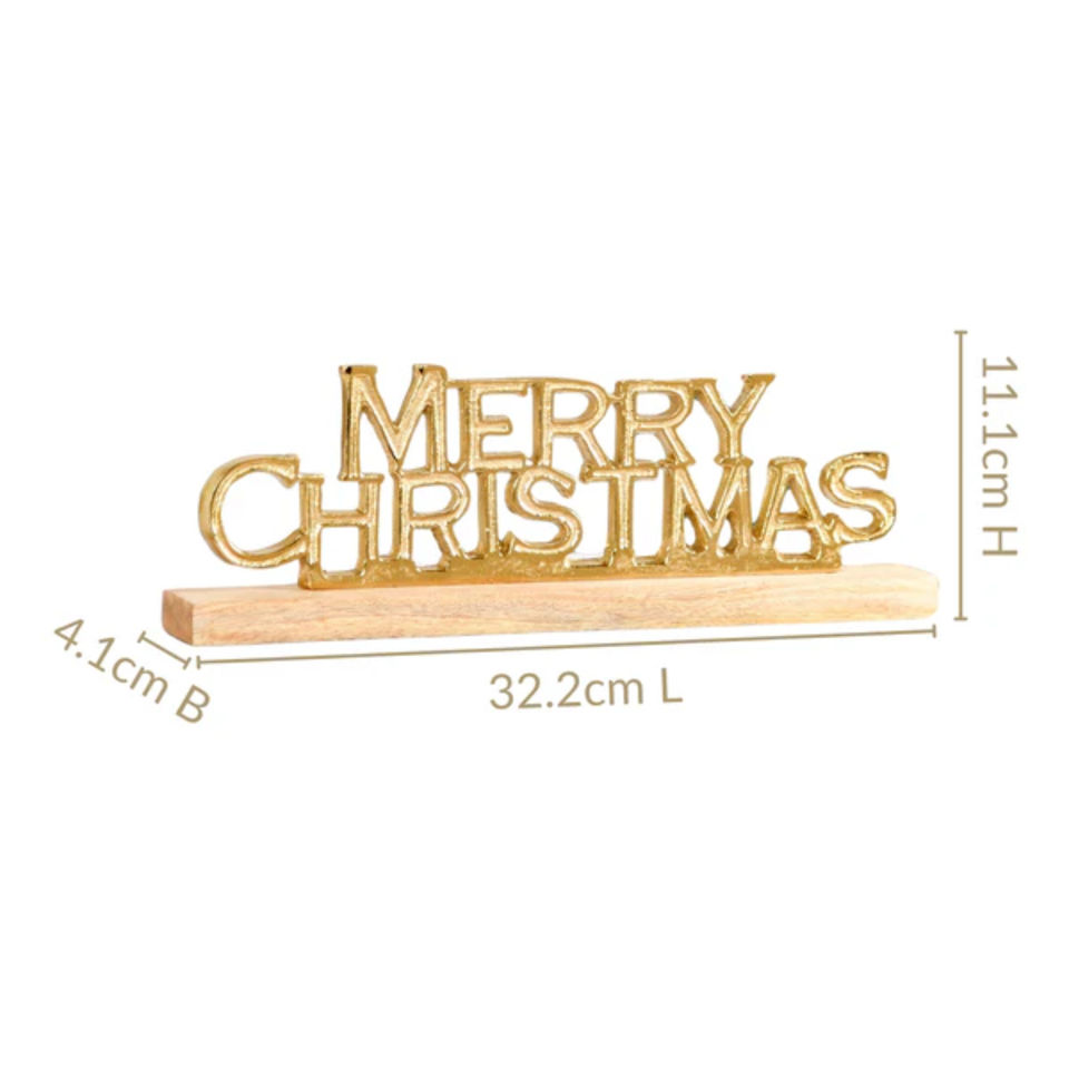 Festive Decor Hot Sale Merry Christmas Gold Letter Sculpture Table Decor Holiday Home Decoration Wooden Base Display Gift Item