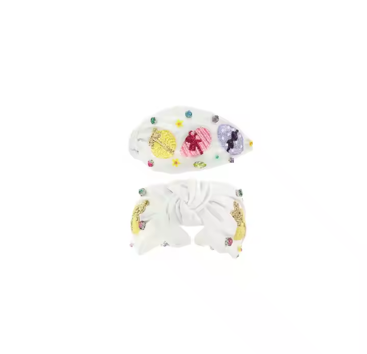 Festive Holiday Easter Headband With Bunny Rabbit Embroidery And Beaded Egg Accents Featuring A Stylish Knot For Girls