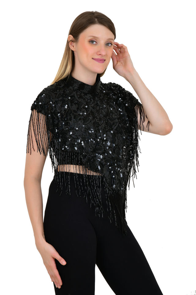 Net Fabric with Handmade Embroidery Beads Sequins WorkMaterial