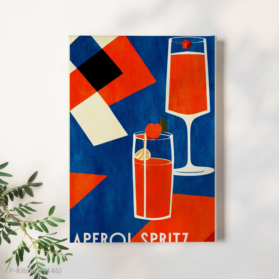 Festive Wall Decoration, Aperol Spritz Graphic Cocktail Illustration Poster, Modern Bar Wall Decor