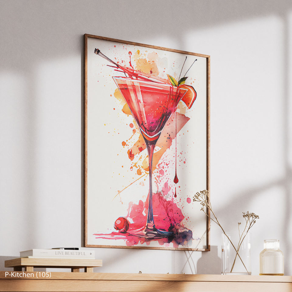 Festive Wall Decoration, Colorful Cocktail Splash Illustration Poster, Modern Bar Wall Art Print