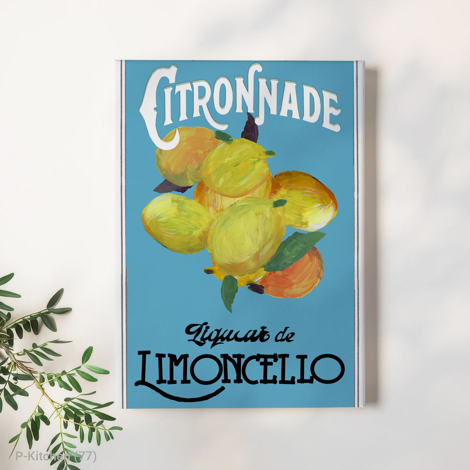Festive Wall Decoration, Limoncello Lemon Drink Poster Illustration, Retro Beverage Wall Art Print