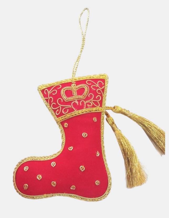 Festive Zari Christmas Stocking Hanging Ornament with Thread & Beadwork – Holiday Decor for Gifting & Home