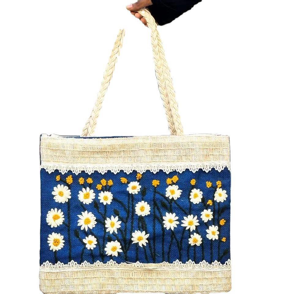 Eco-Friendly Large Cotton Canvas Jute Tote Bag Festive Colorful Outdoor Useable with Rope Handle From Bangladesh