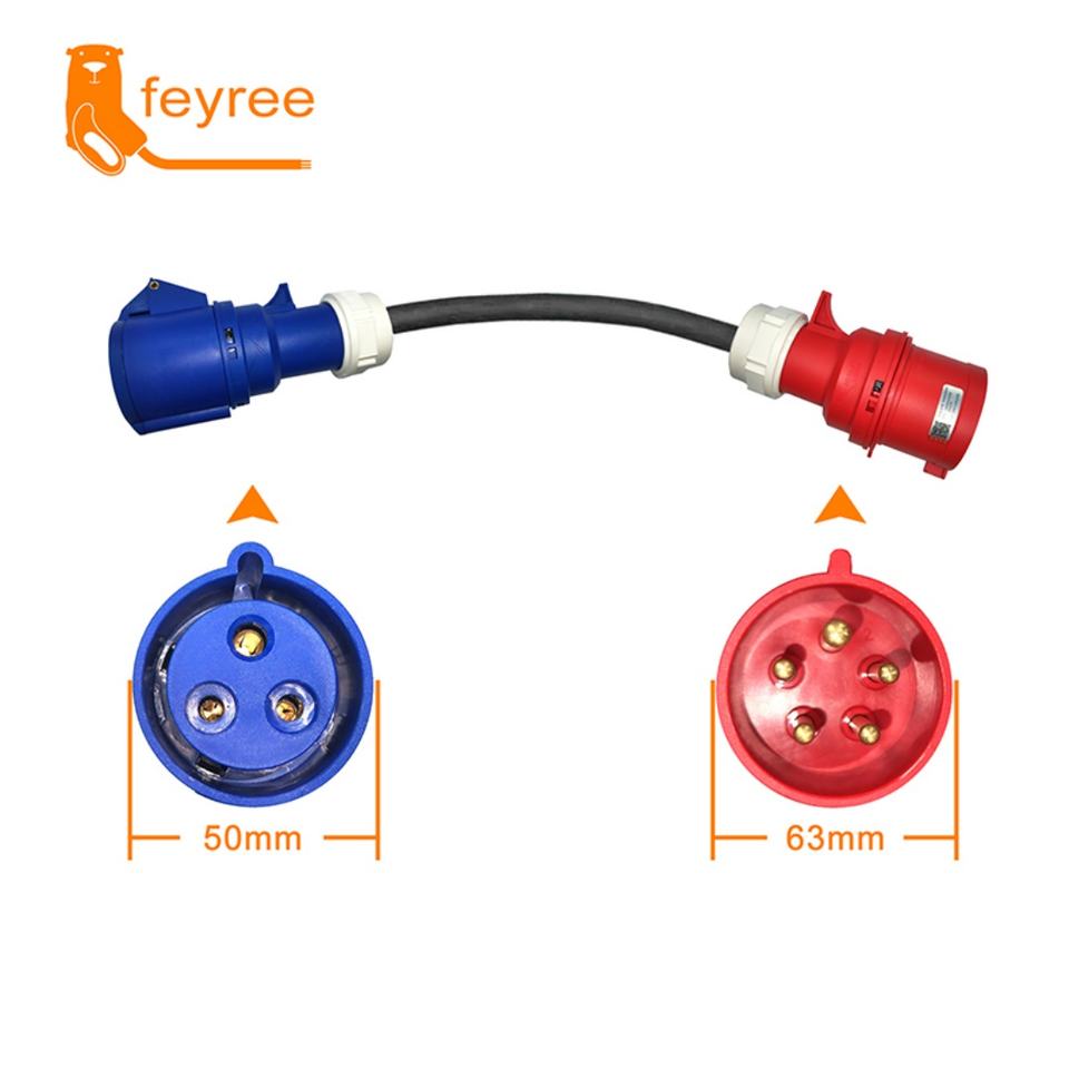 Feyree New 7KW Single-phase 32A Socket to 3-phase 32A Plug EV Charging Cable Adapter for Electric Vehicles