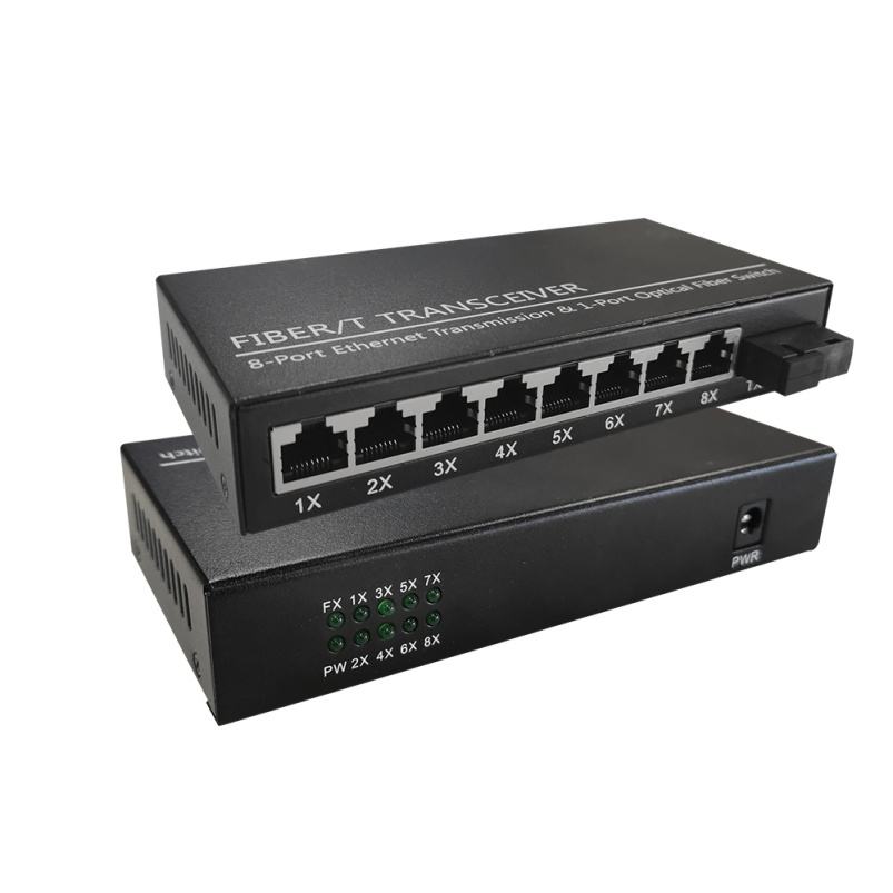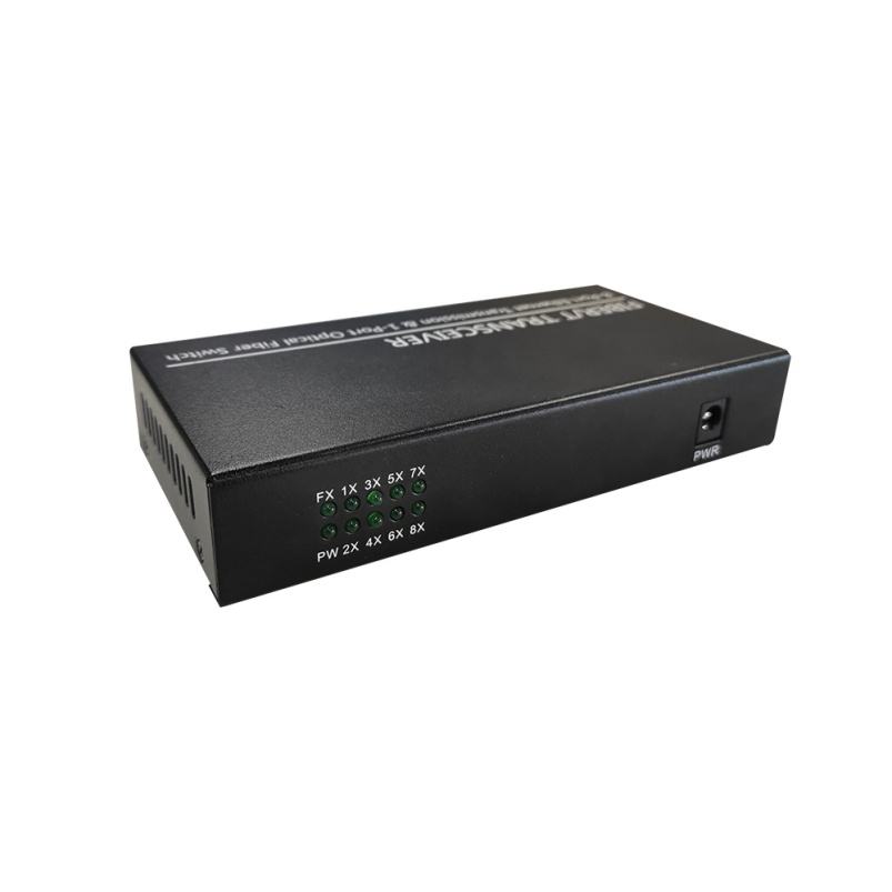 Fiber/T Transceiver 8-Ethernet Transmission 1 Optical Port 10/100Mbps 20/40/60/80/100KM SM Fiber Media Converter