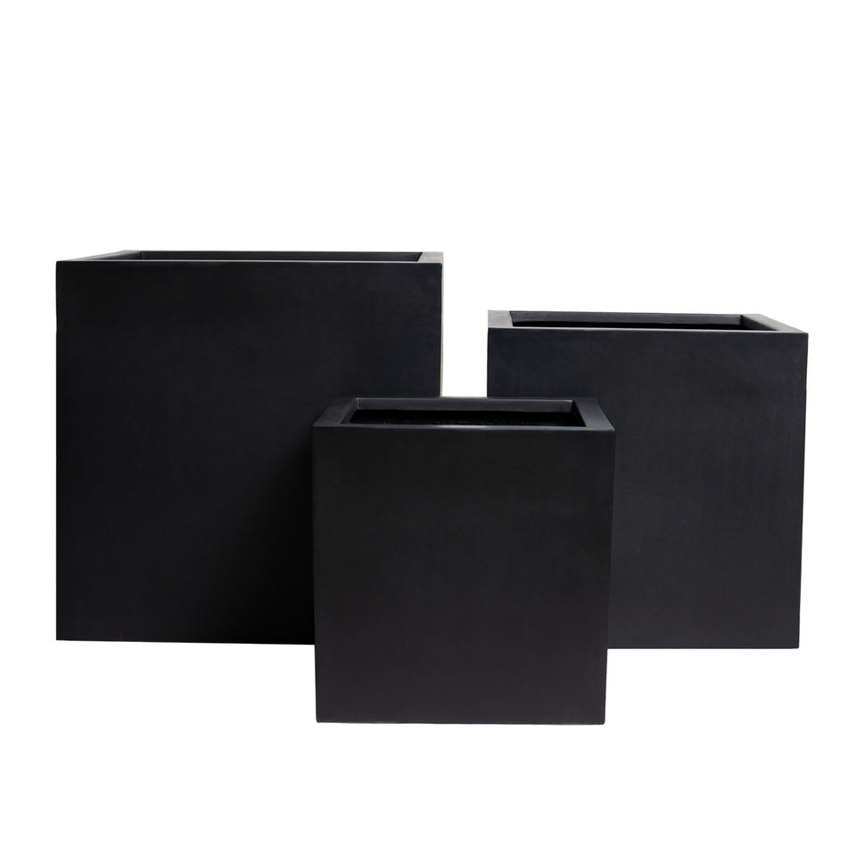 Fiberglass Material Flower Trought Planter Pot Rectangle Shape Black Smooth Color Finished for Outdoor Garden Plant