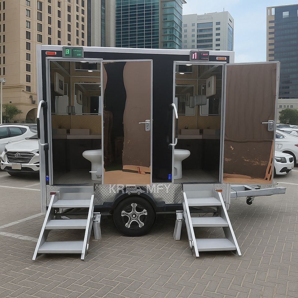 Fiberglass Mobile 2 Stalls Luxury Portable Bathrooms And Shower Container Toilet For Outdoor Double Door Potty Trailer