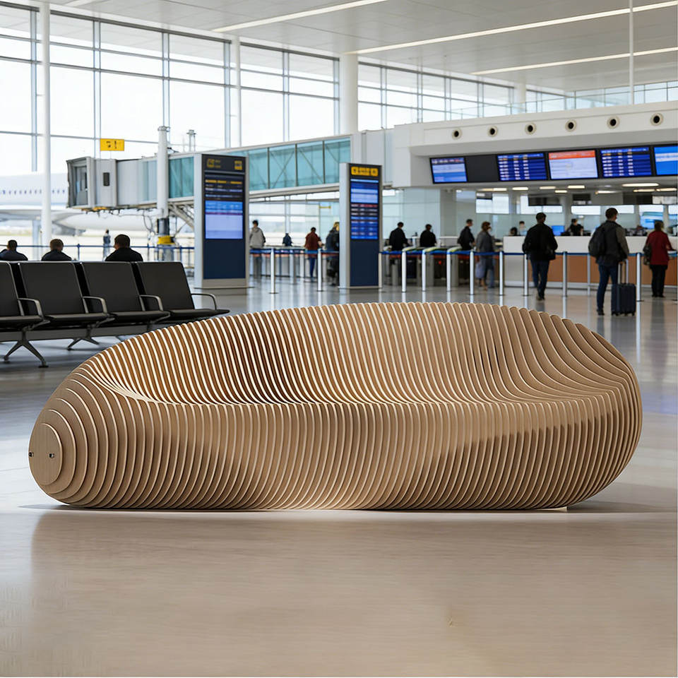 Fiberglass Sliced Modern L-Shape Saber Leg Outdoor Commercial Waiting Bench with Easy Clean & Eco-Friendly Features