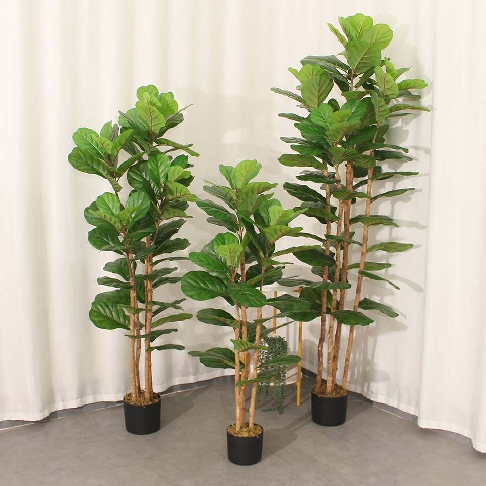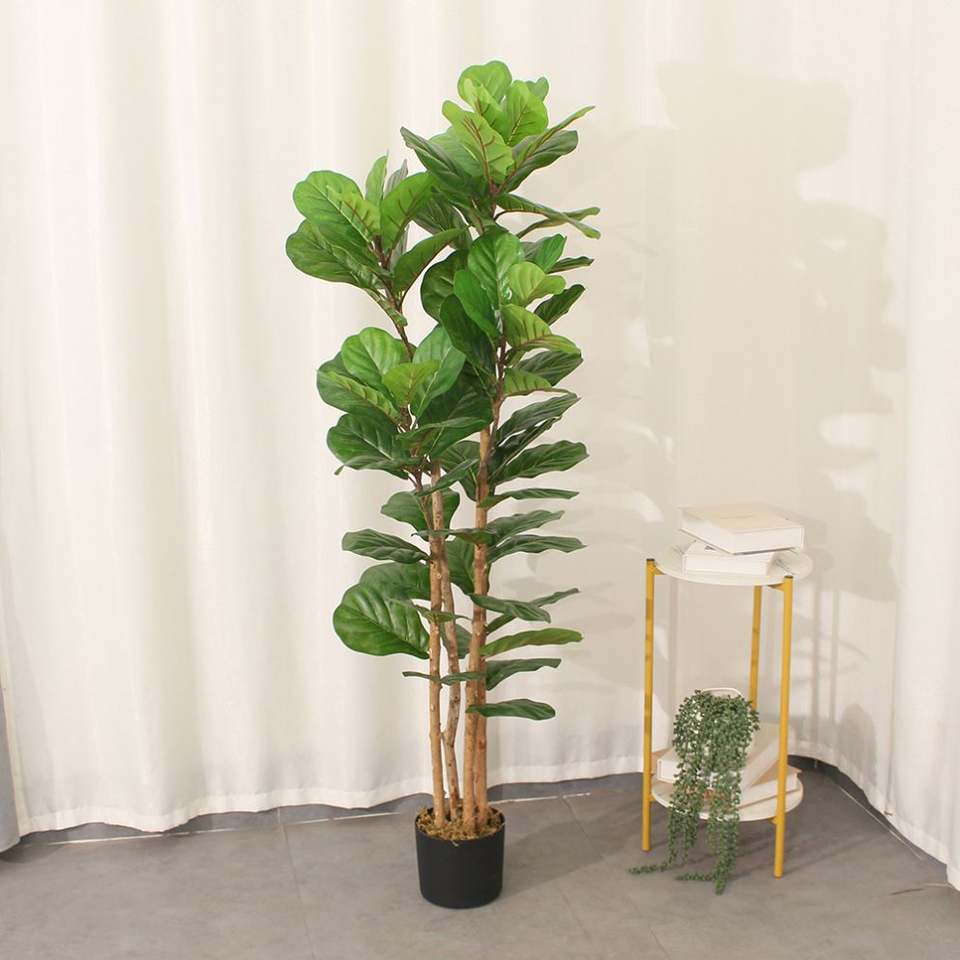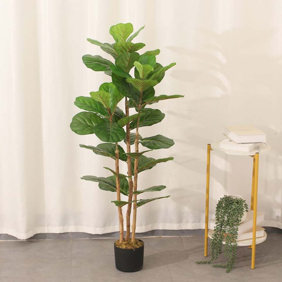 Ficus Lyrata Plant Banyan Faux Plastic Plants Artificial Fiddle Leaf Fig Tree 120CM Environment-Friendly for Home Office Decor