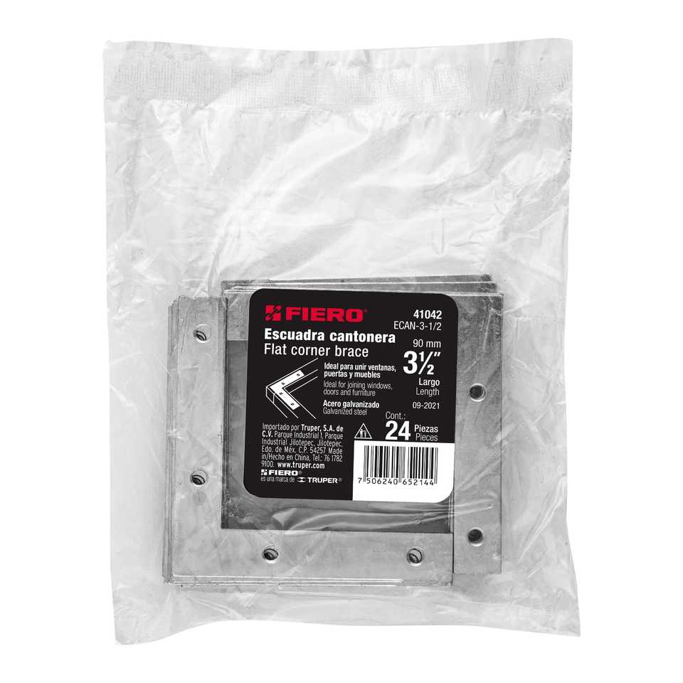 Fiero ECAN-3-1/2 Flat Corner Squares Bag 24 3-1/2'x3-1/2' for Furniture Kitchen Bathroom Cabinets Office Dining Wood Iron