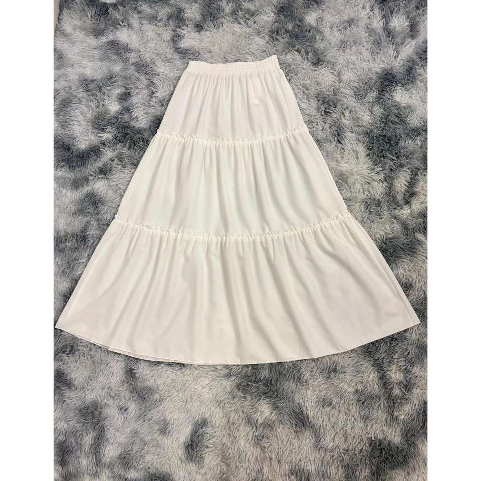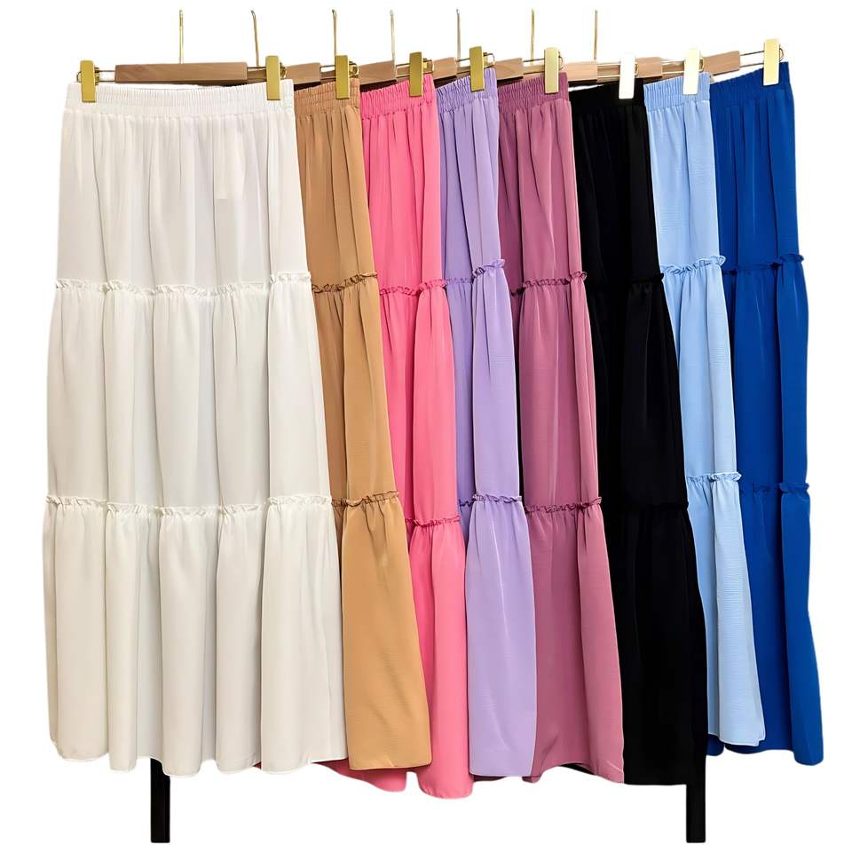 Figure-Flattering Women's Korean Ruffle Dolly Skirt 106cm CEY Polyester Cotton Plain Dyed for Casual Wear