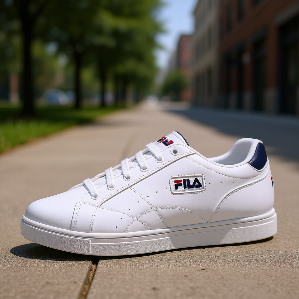 Fila Men's White Low-Top Casual Sneakers With Navy Red Accents Suede Upper Mesh Lining Breathable Lace-Up Walking Shoes All Seas