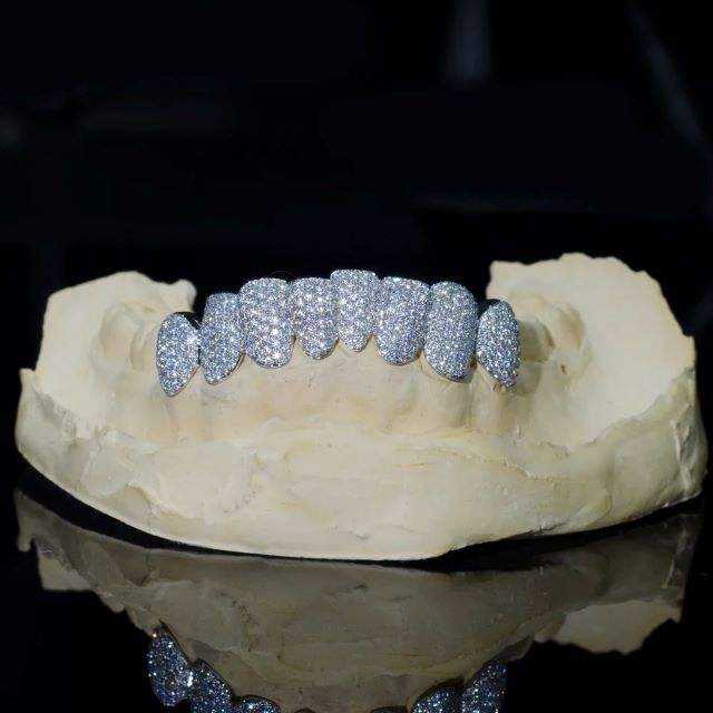 Filigree Fashion Body Jewelry Moissanite Round Cut Diamond Teeth Grillz 8 Top 8 Bottom 925 Silver Fine Party Gift For Boy Friend