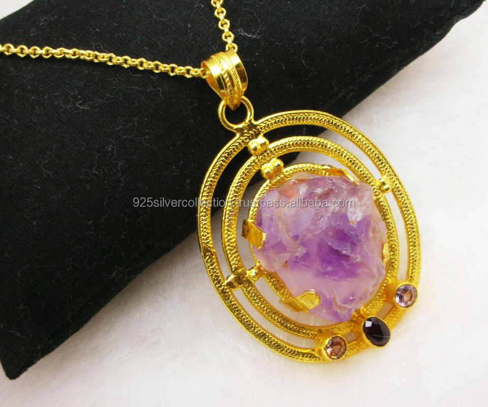 Filigree Gold Filled Pendant Jewelry Amethyst February Birthstone for Children Fashionable Brass Main Material for Weddings