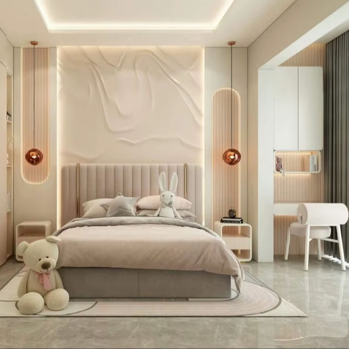 Find similar icon 2025 Hotel Apartment Star Furniture Teddy Fabric Bedroom Spring Wooden Luxury Bed Turnkey Solution for Hotels