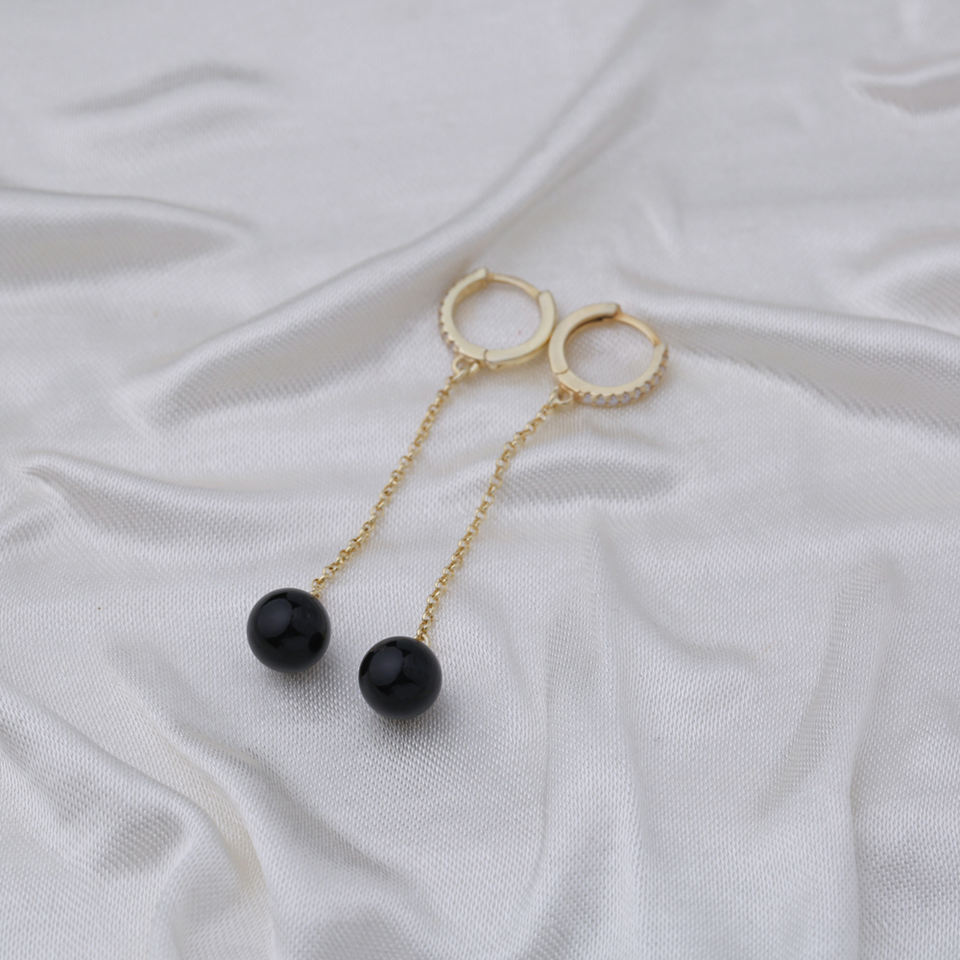Fine Black Mallorca Pearl Charm Dangle Earrings Turkish Handmade Wholesale 925 Sterling Silver Jewelry