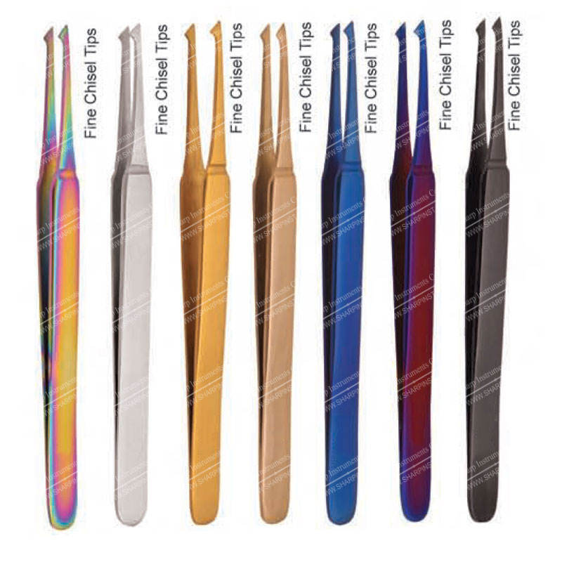 Name:Fine Chisel Tips Eyelash Extension Tweezers Plasma Coting Multi Color