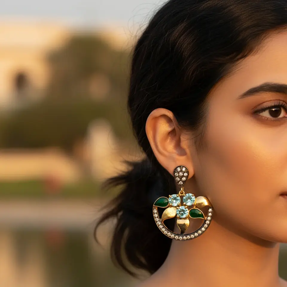 "Fine Dangle Earrings Gold Plated with Gemstones-Fashion Jewelry for Women"