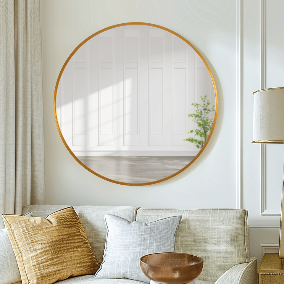 Fine-Edged Gold Mirror for Bathroom Living Room Bedroom Entryway and Hallway Aluminum Alloy Wall Mirror Circle Design