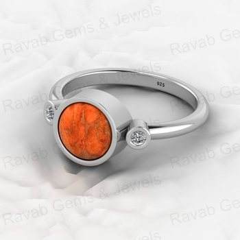 Unisex Fine Fashion Ring High Quality 925 Sterling Silver 8mm Orange Mohave Sponge Coral Band CZ Solid Sterling High Quality