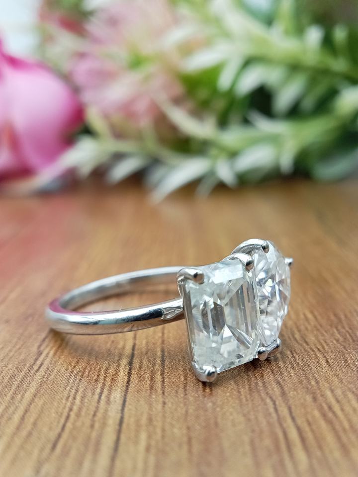 Fine Jewelry 10K Solid Yellow Gold EMERALD PEAR TWO STONE Diamond Engagement Ring 2.5 CT White Moissanite Wedding Set Ring