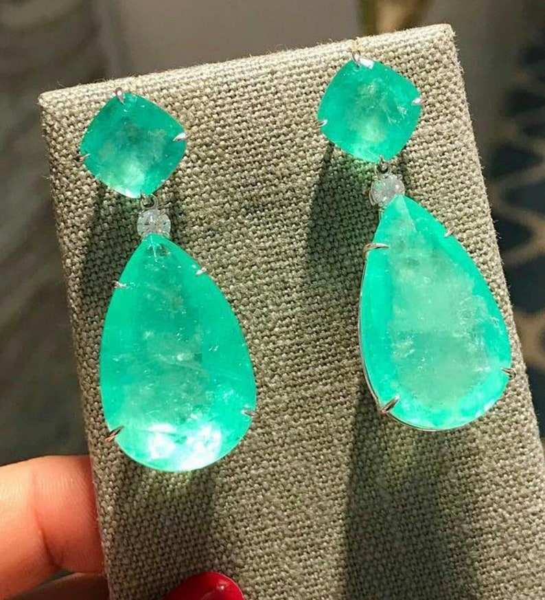 Natural Glowing Emerald Duplet Earring 14K Gold Luxury Jewelry