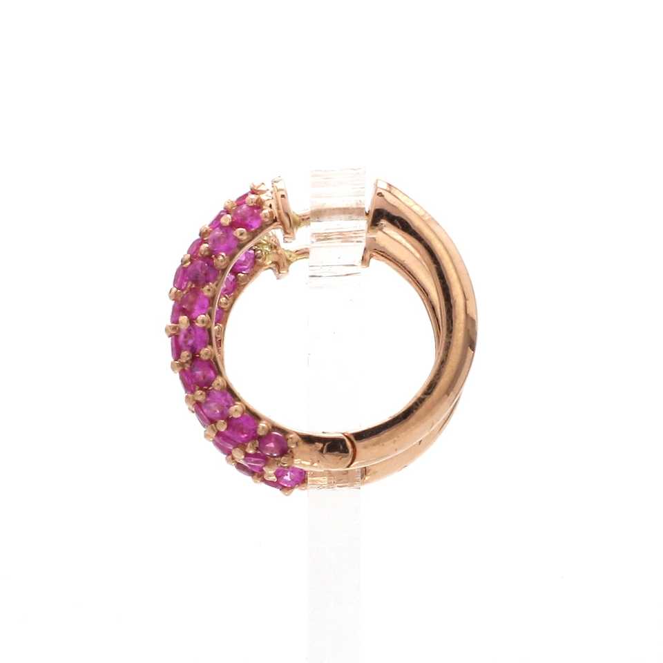 Fine Jewelry 14k Solid Gold Natural Pink Sapphire Paved Stone Hoop Earrings Women Jewelry Wholesale Pure Gold Earrings for Gifts