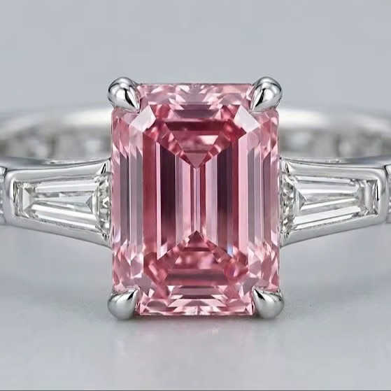 Fine Jewelry 3Ct Emerald Cut cvd with igi vvs vs ef side diamond Solitaire Ring with side diamond Silver Ring