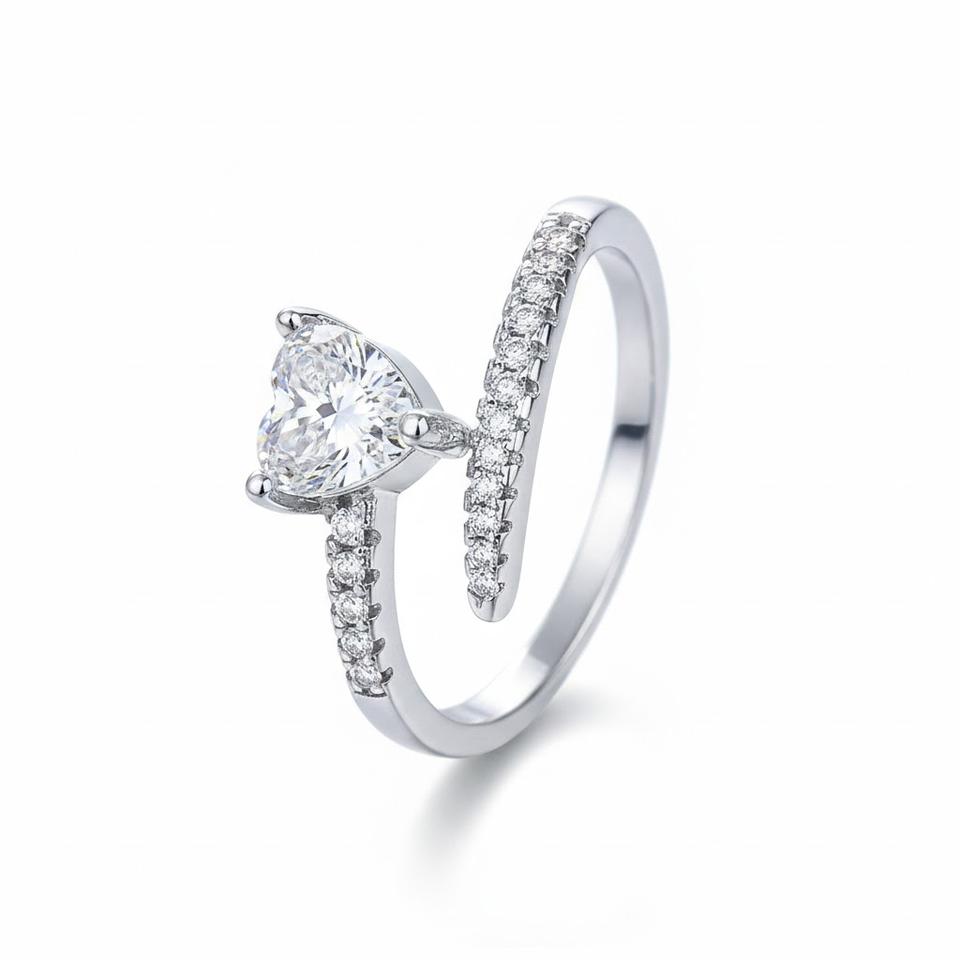 Fine Jewelry 925 Sterling Silver Finger Ring 14K Solid Gold Open Heart Cuff Band Lab Diamond Round Diamond Romantic Gift for Her