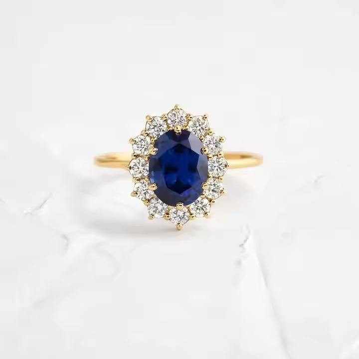 Fine Jewelry 9k/10k/14k/18k Solid Gold Blue Sapphire Engagement Ring for Women Available at Affordable Price