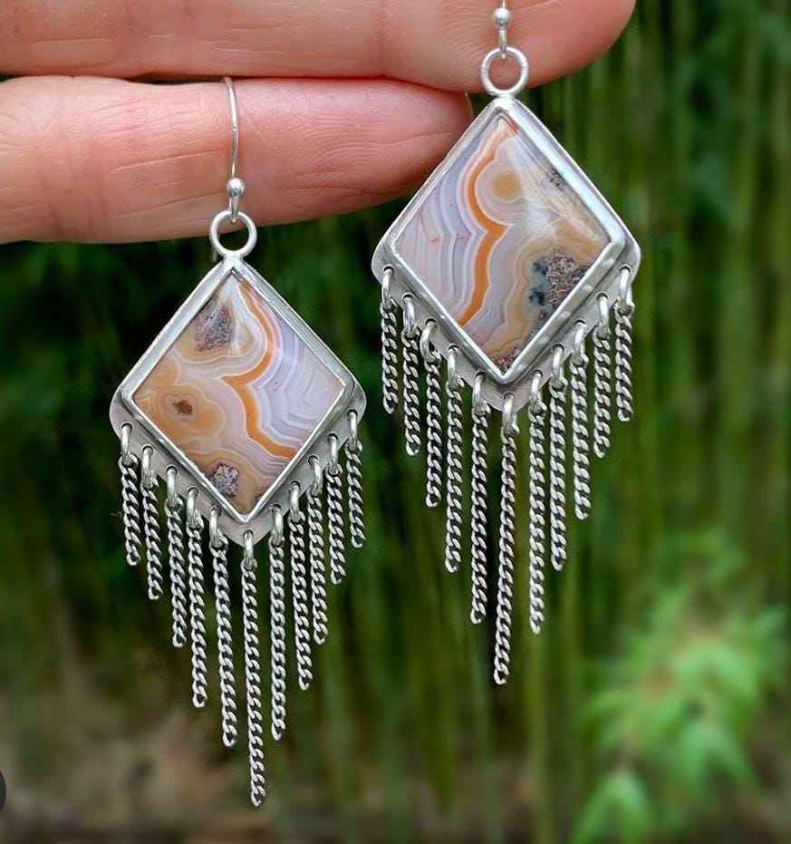 Keyword:Botswana Agate Natural Gemstone Earring Silver Statement Jewelry