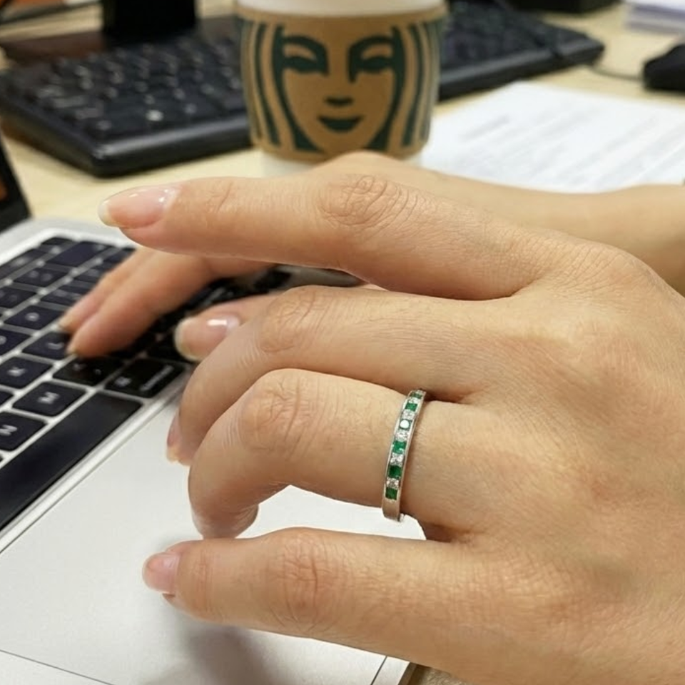 Fine Jewelry Elegant 18k White Gold Real Princess Cut Diamond Gemstone Emerald Jewelry Eternity Wedding Band Ring for Women