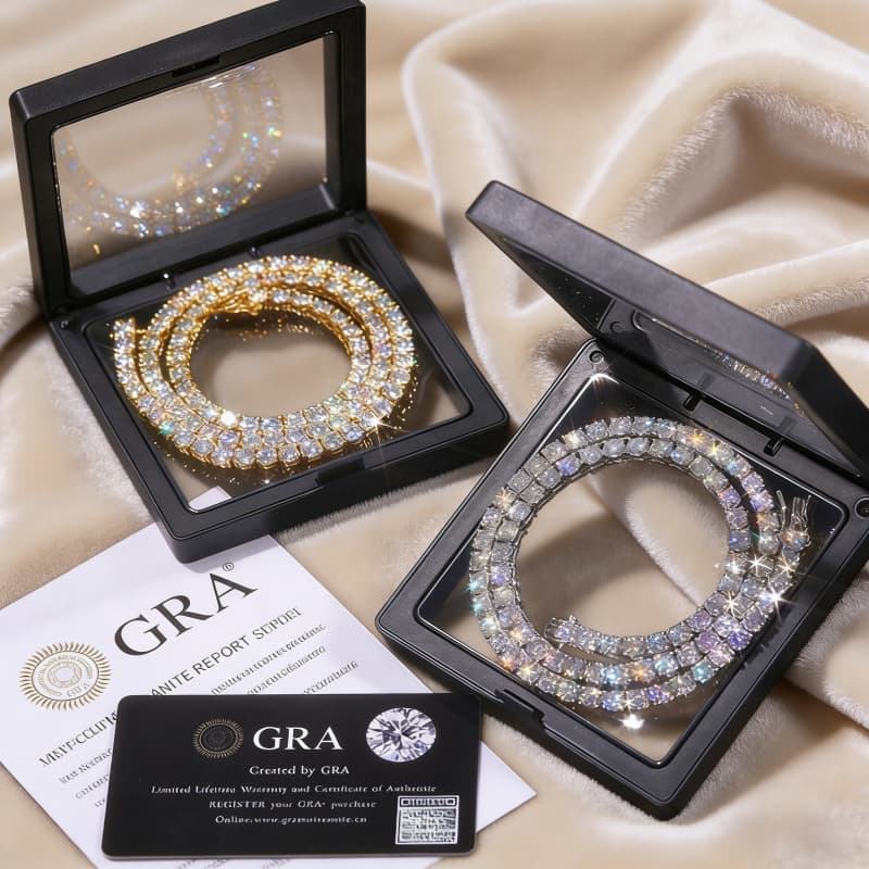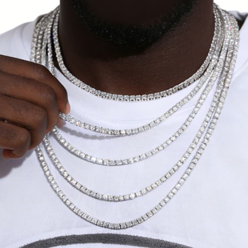 Fine Jewelry Hip Hop White Gold 925 Sterling Silver VVS Moissanite Diamond Cluster Tennis Chain Bracelet Necklace for Men Women