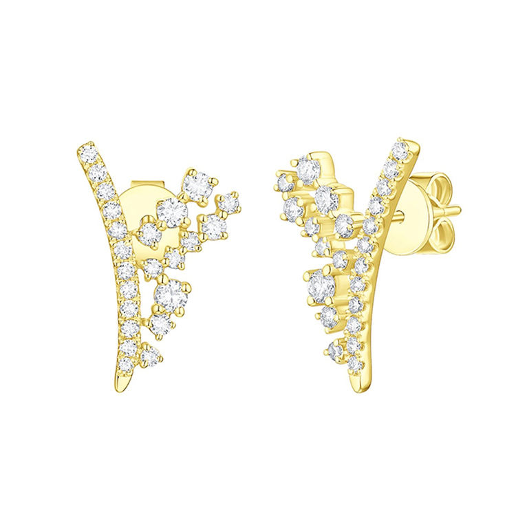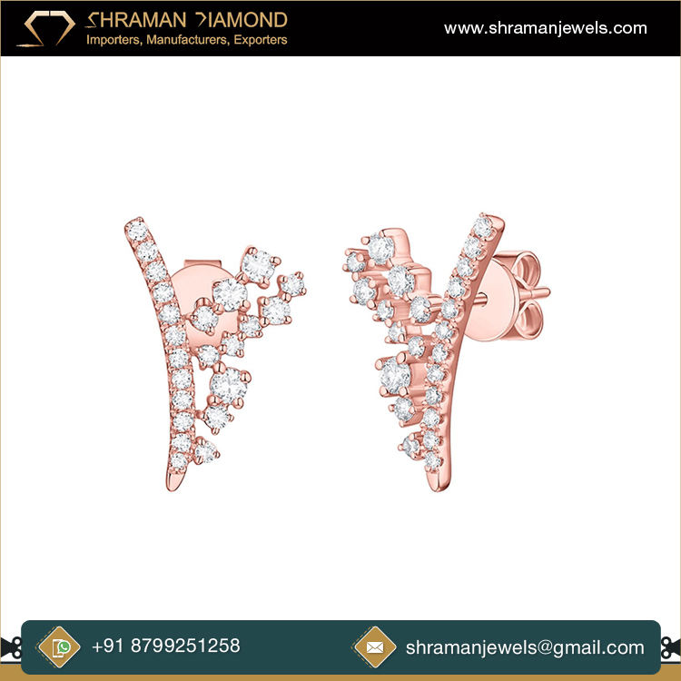 Trendy Designer Fashion Jewelry 14K Gold Custom Cute Moissanite Diamond Flower Stud Earring Set Women's Daily Wear Wedding Party