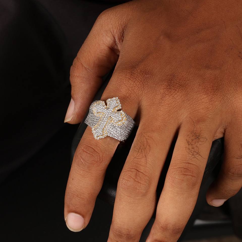 Fine Jewelry Iced Out Hip Hop 14K Gold Plated Cross Ring Round Cut Diamond IGI Certified VVS Moissanite Party Ring for Men