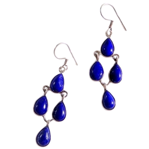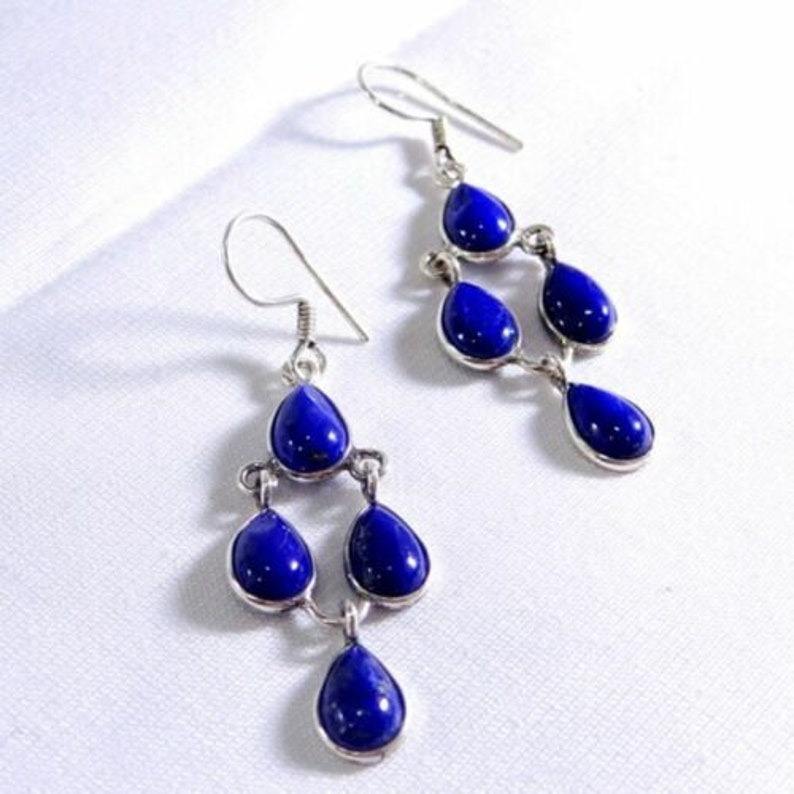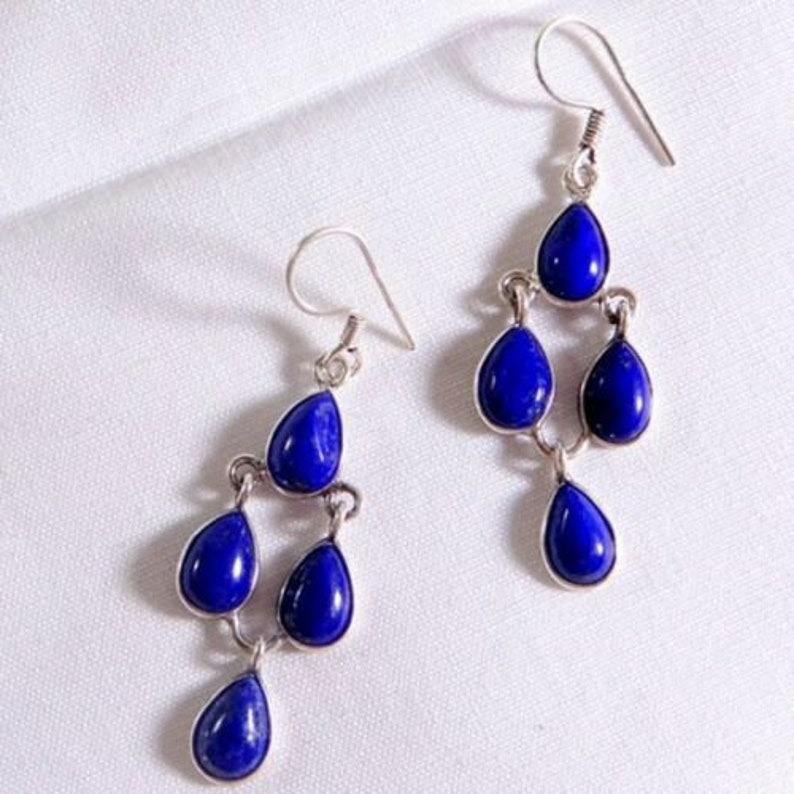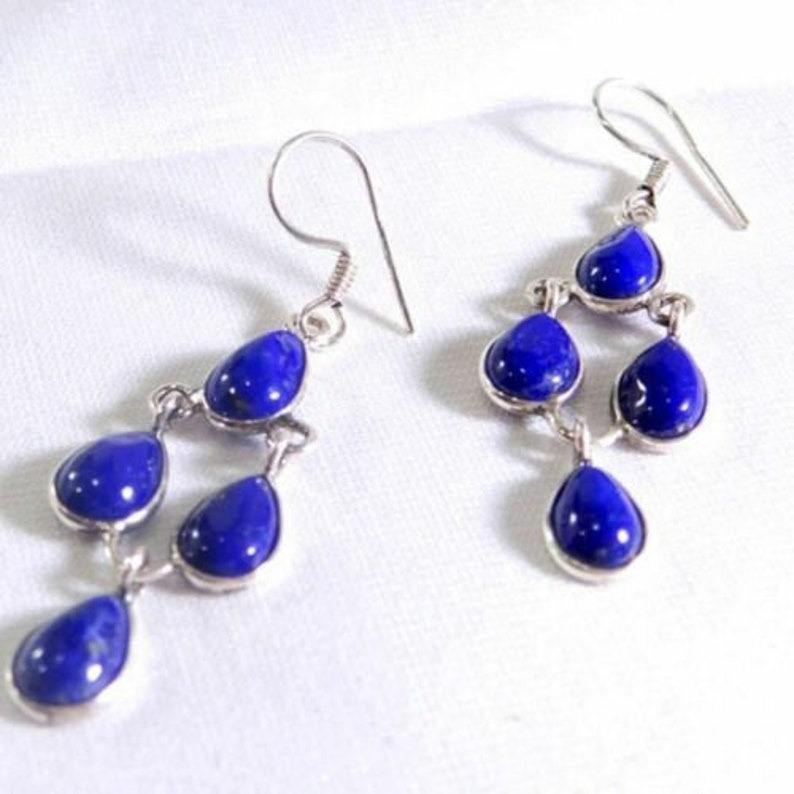 Fine Jewelry Lapis Lazuli Gemstone Women Earrings 925 Solid Sterling Silver Earrings for Women Girls Dangle Silver Earrings