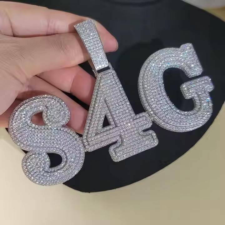 Fine Jewelry Pendants & Charms Iced Out VVS Moissanite Hip Hop Custom Large Name Pendants with Cuban Chain 925 silver jewelry