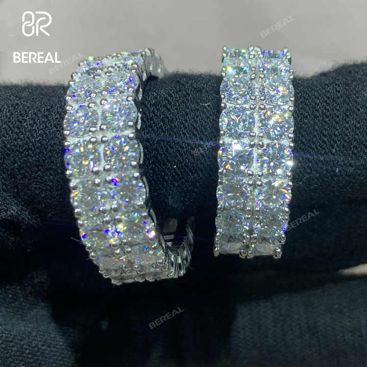 Fine Jewelry Real 10K 14K 18K Solid Gold Two Rows Eternity Ring Band Round Brilliant Cut Vvs Moissanite Engagement Wedding Ring